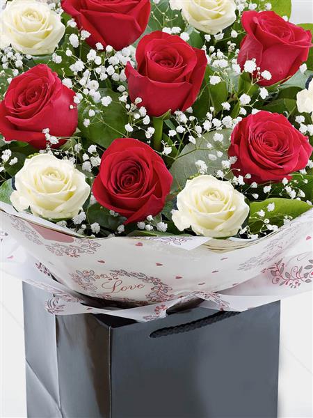 12 Red & White Rose Bouquet