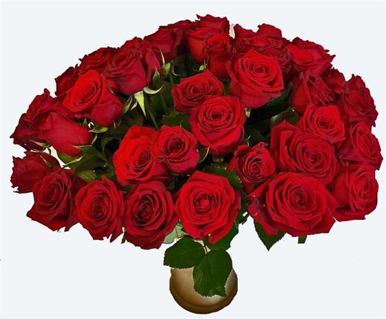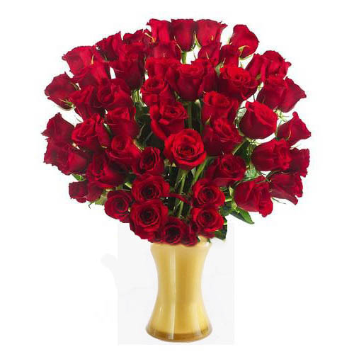 50 Red Roses & Elegant Gold Vase