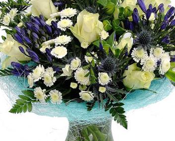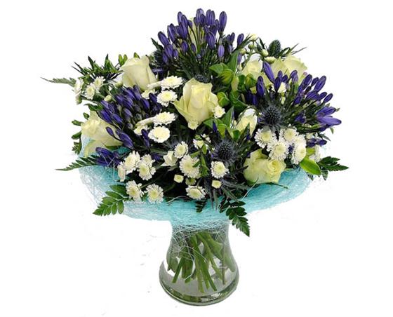 Agapanthus White Roses Purple Freesia White Spray Chrysanthemums Eryngium