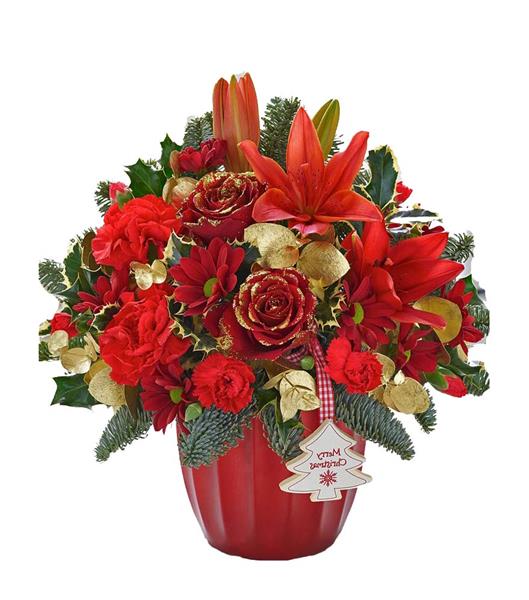 Red Lilies Red Carnations Red Spray Carnations Spruce Holly