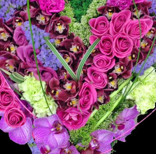 Pink Orchids Pink Roses Green Carnations Lilac Statice Burgundy Calla Lilies