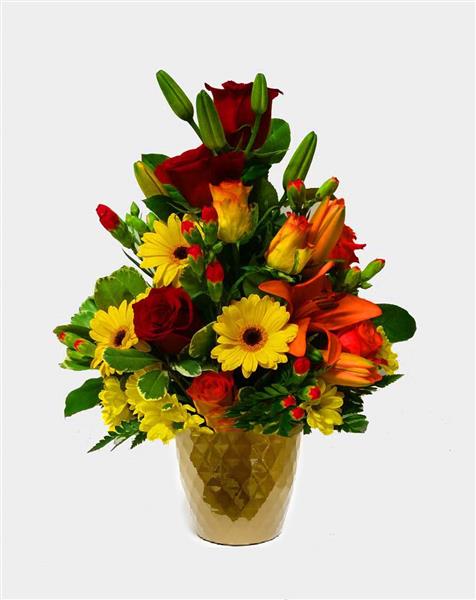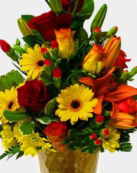 Red Roses Orange Roses Yellow Spray Chrysanthemums Red Spray Carnations