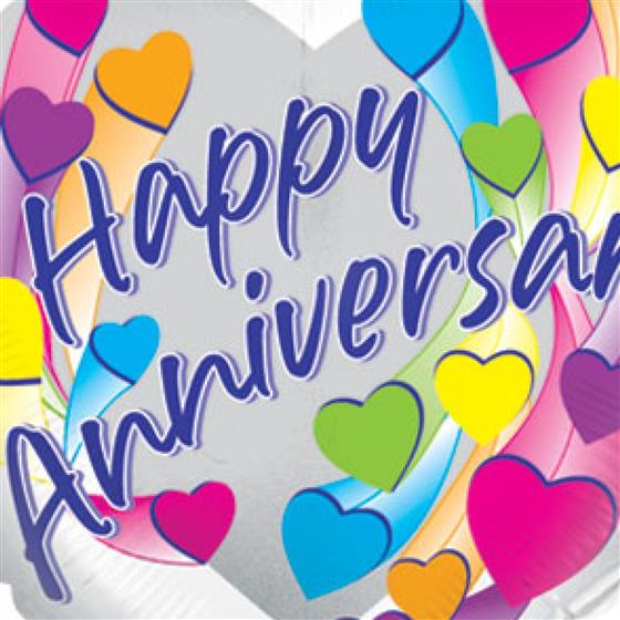 Send your wishes with a surprise delivery of a ‘Happy Anniversary’ worded helium-filled balloon. Mark this special day with this brightly coloured balloon tied with ribbon to match delivered with a balloon weight.