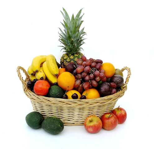 Filled with Fresh Green Apples Green Grapes Red Grapes Red Apples Oranges Pineapple Mango & Kiwi Fruit.