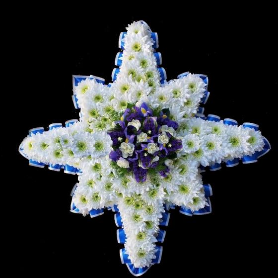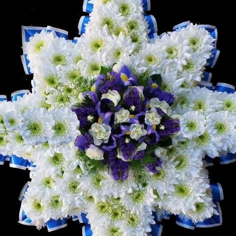 White Spray Chrysanthemums Iris Purple Statice White Polly Ribbon