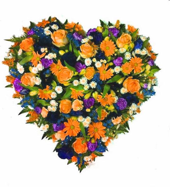 Orange Spray Chrysanthemum ,Purple Statice ,Orange Germini ,Orange Roses ,Purple Lisianthus & Mixed Foliage