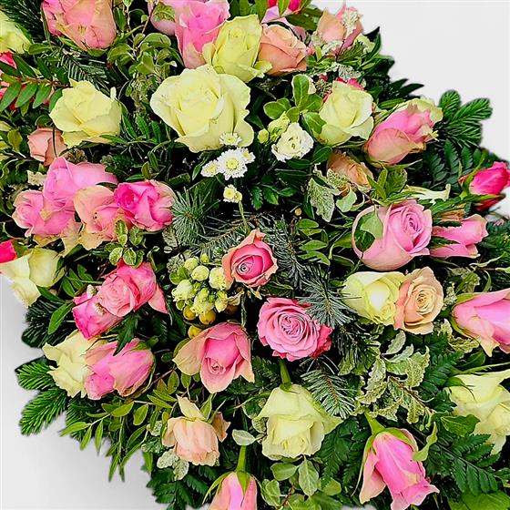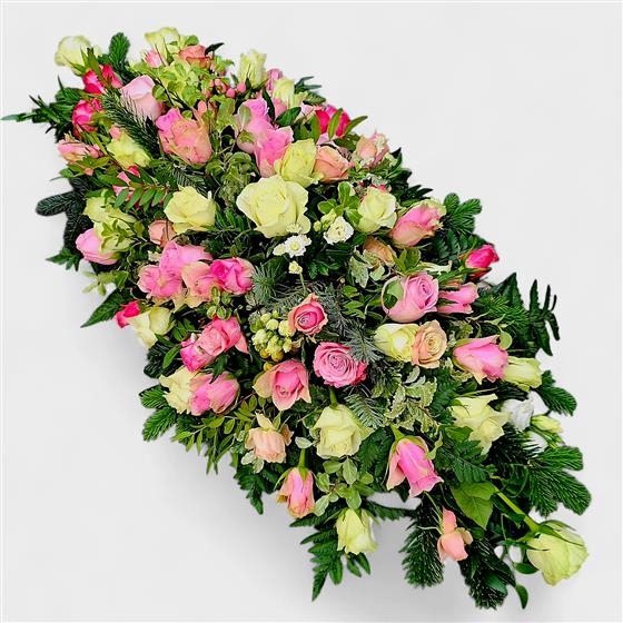 Pink White Rose Luxury Casket Spray