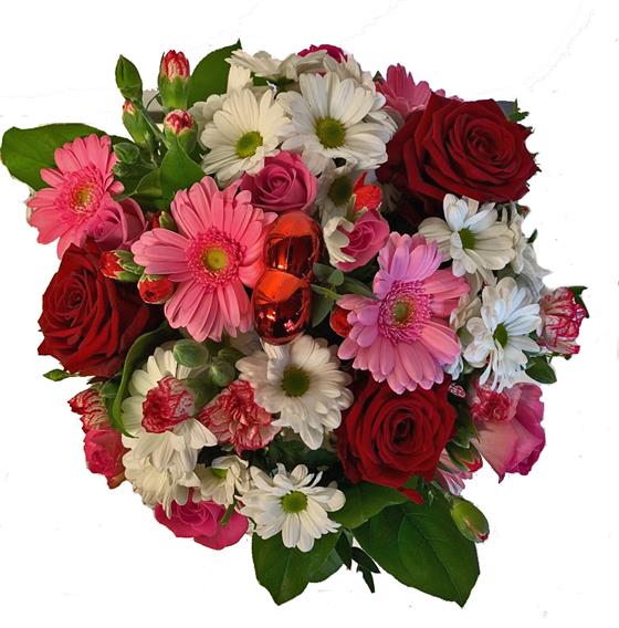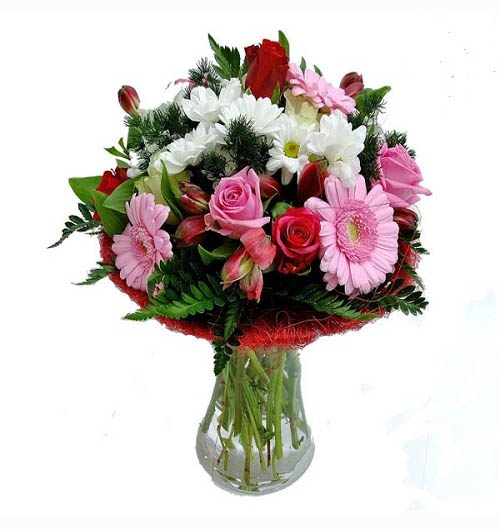 Red Roses Pale Pink Germini White Spray Chrysanthemums Pink Roses Deep Pink Alstromeria