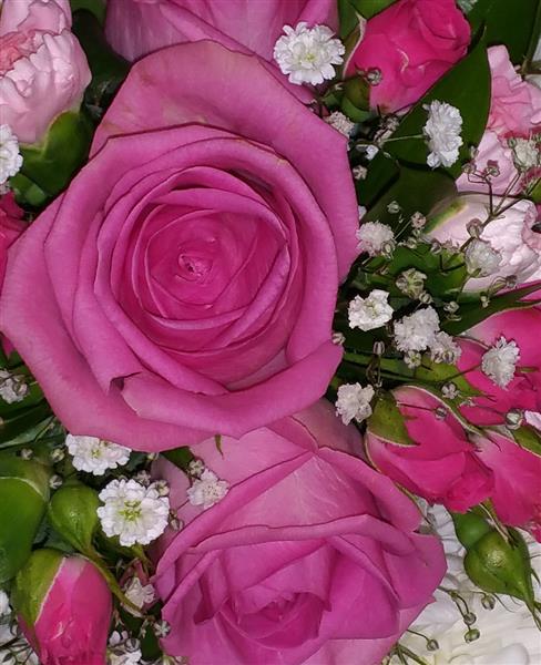 White Doubles Pink Spray Roses Pink Spray Carnation Gyp