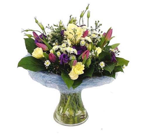 Tulip Purple Lisianthus Carnations White Spray Chrysanthemums Purple Statice