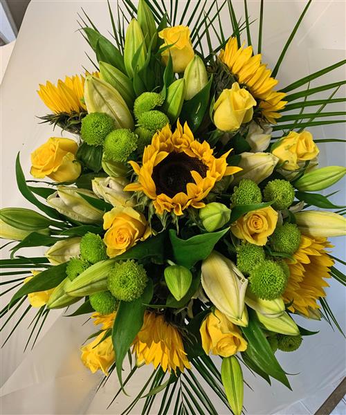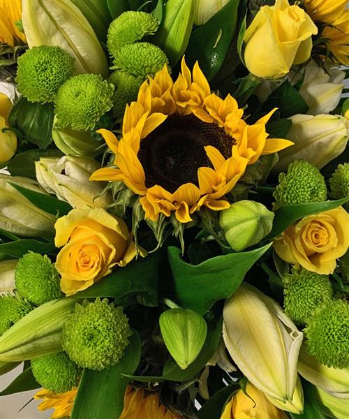 Sun Flowers Yellow Roses White Lilies