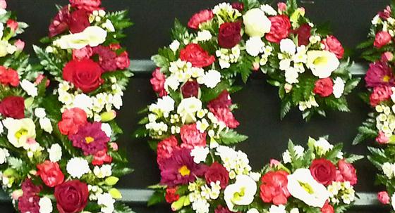 Red Roses Red Spray carnations White Lisianthus White Spray Chrysanthemums Leather Leaf