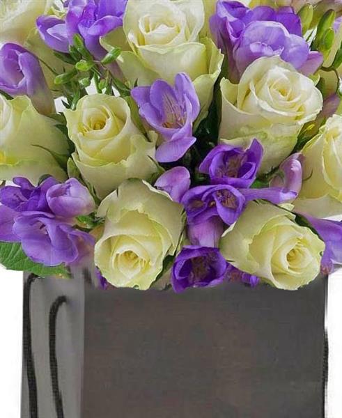 Medium 15 x Ivory Roses 8 x Purple Freesia