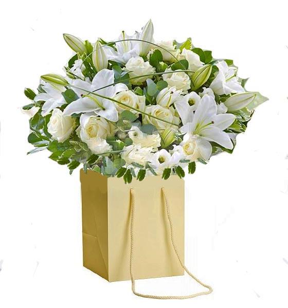 This Hand-tied Bouquet is delivered in a Water Reservoir