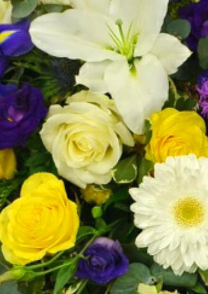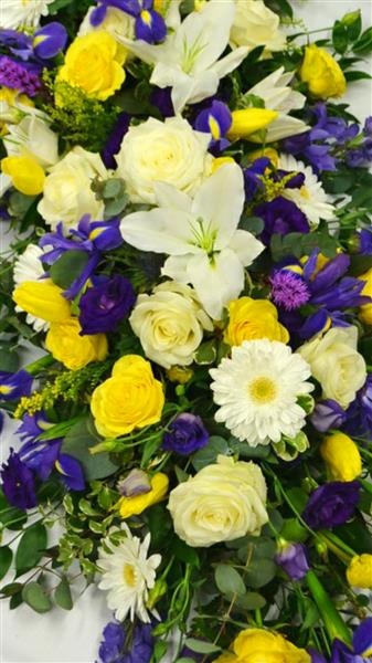 Yellow & Blue Spring Casket Spray