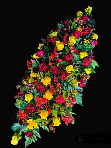 Yellow & Red Rose Casket Spray