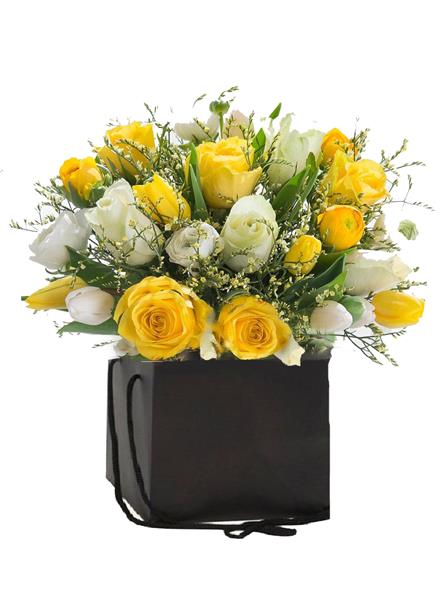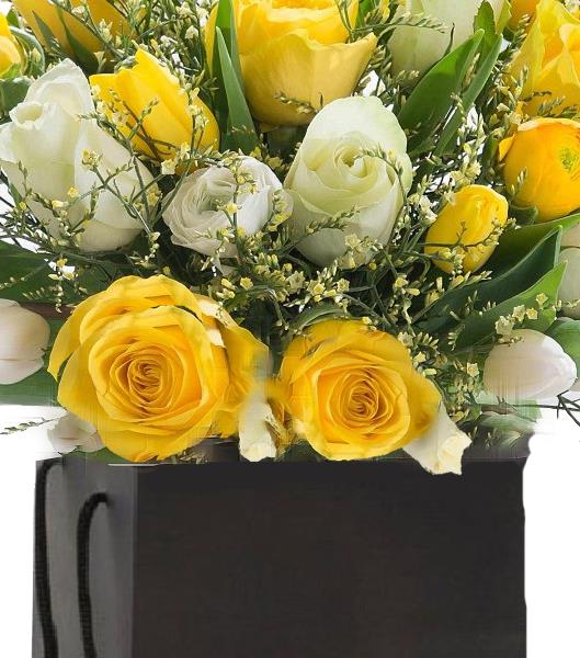 Yellow Roses White Tulips Yellow Broom Mixed Foliage